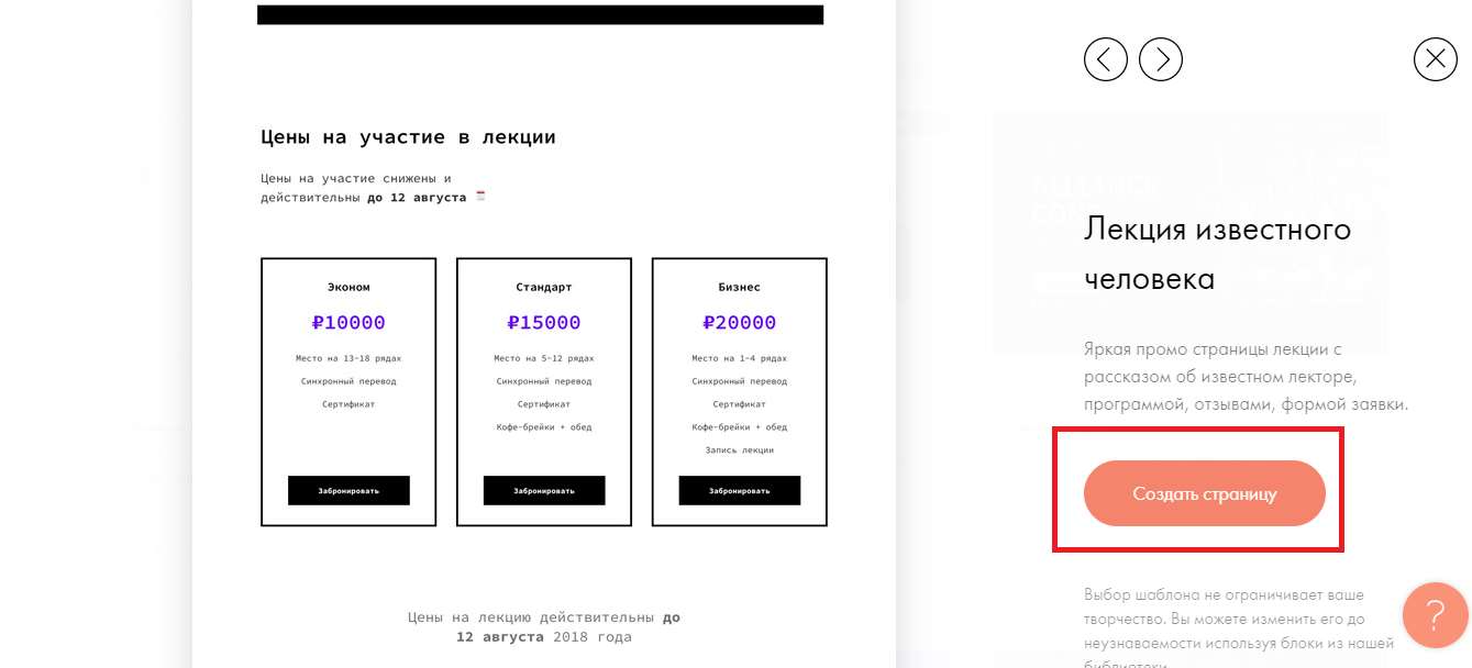 Если внешний вид шаблона устраивает, нажимайте на кнопку «Создать страницу».