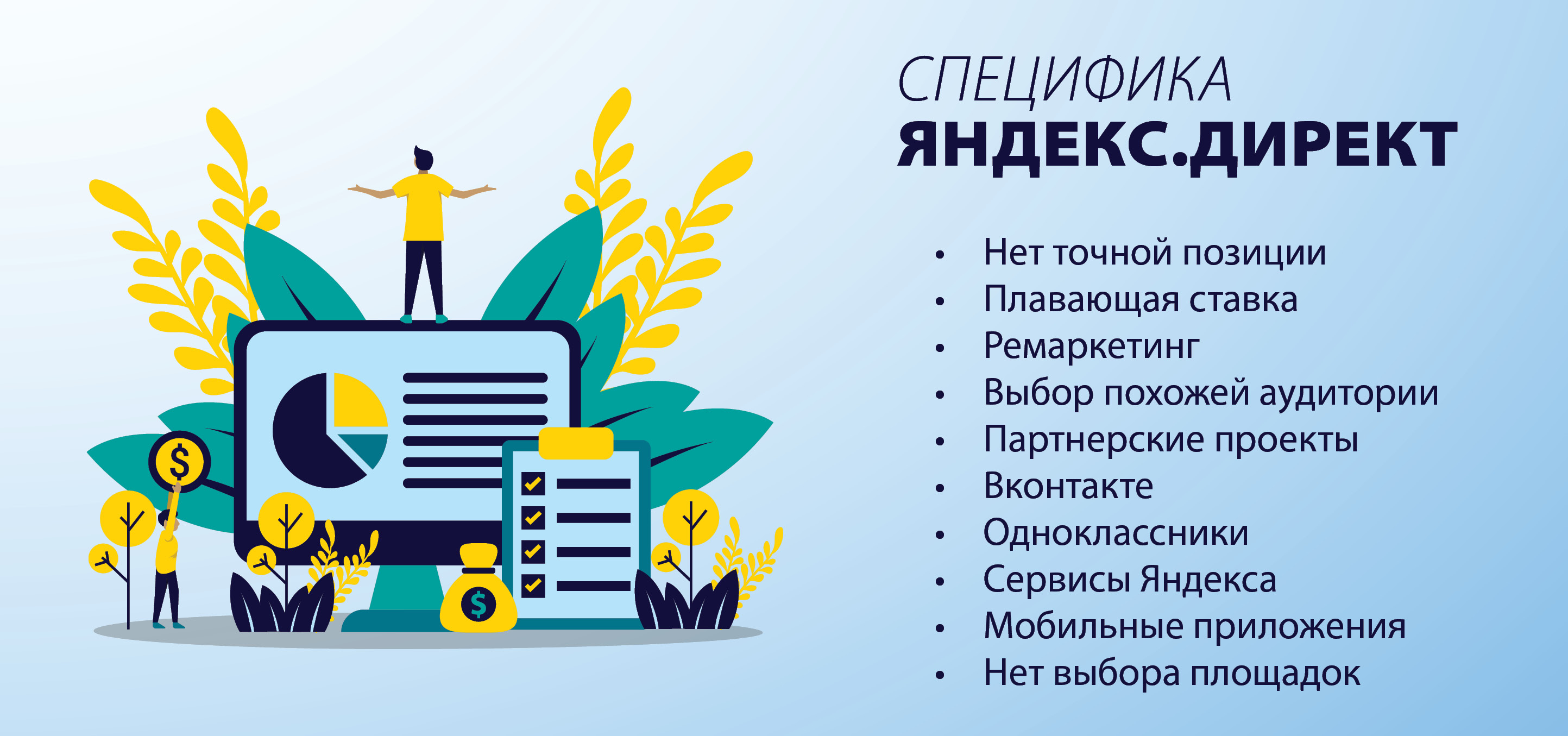 Специфика поисковой контекстной рекламы в «Яндексе» — это отсутствие фиксированной позиции в поисковой выдаче и бесчисленное количество факторов, от которых может зависеть данный параметр. Плавающая система ставок, которая также зависит от того, насколько точный запрос вы хотите обработать.