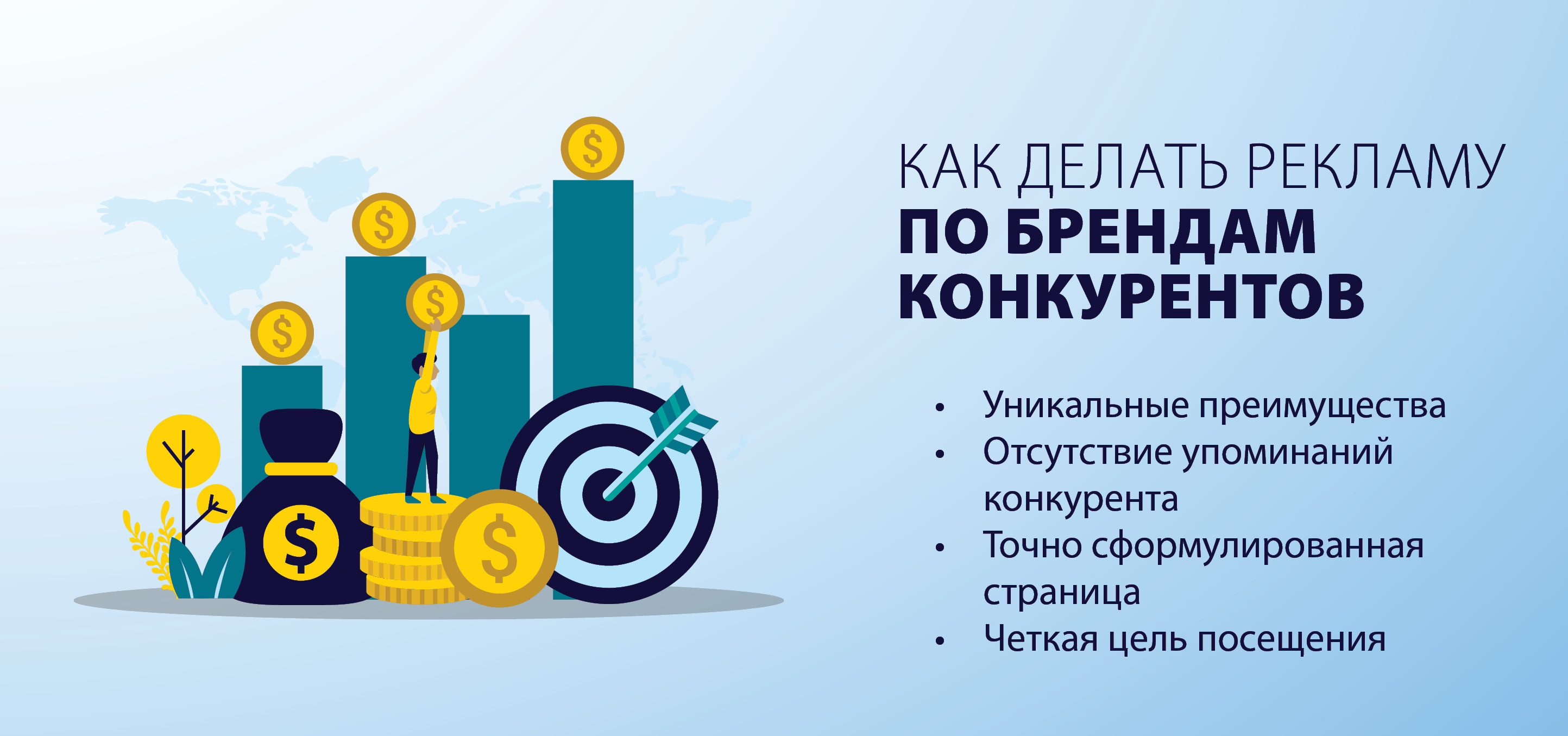 Если же вы принципиально настроены сделать кампанию по брендовым запросам конкурентов, учитывайте следующее: