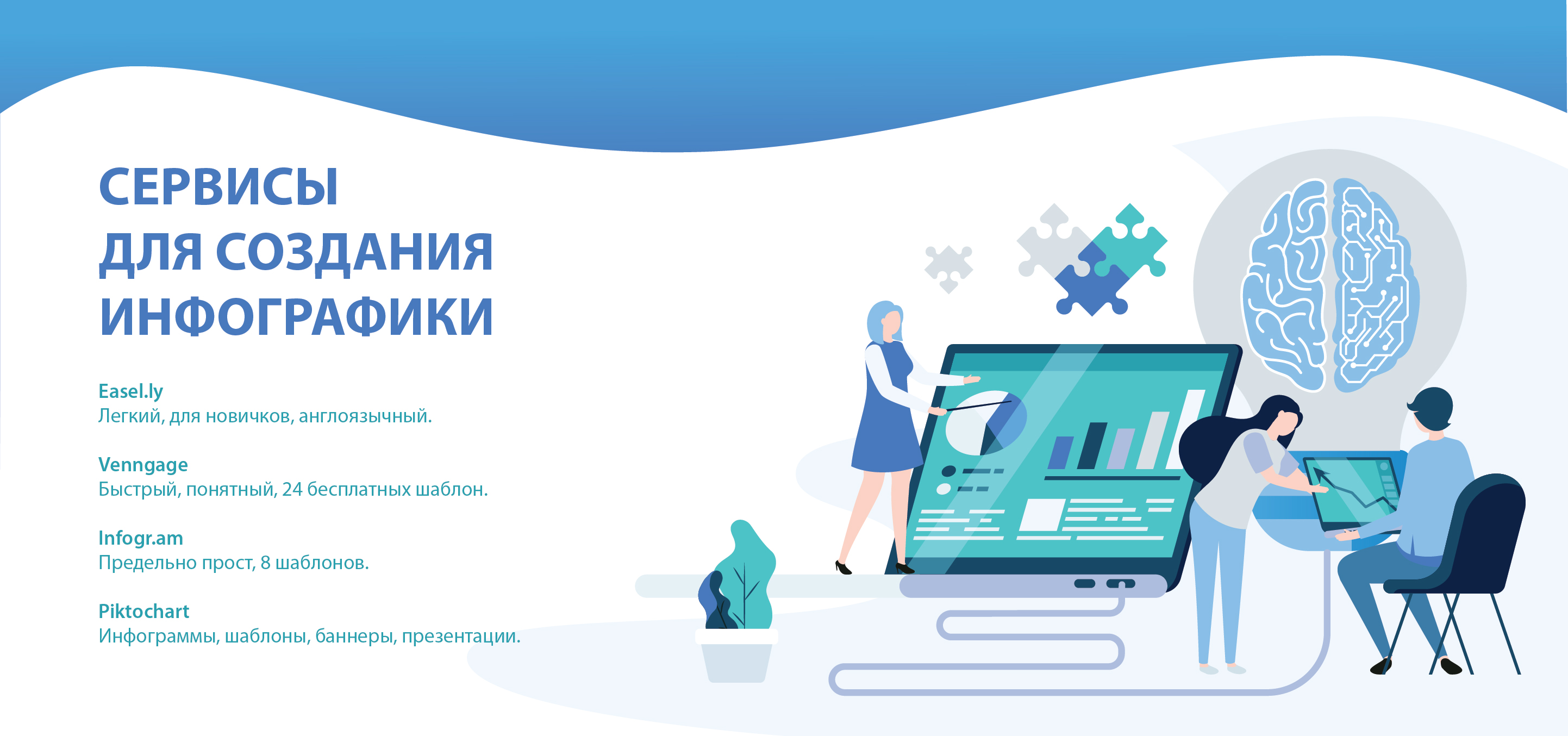 Позволяет создавать инфограммы, шаблоны, баннеры и даже презентации.