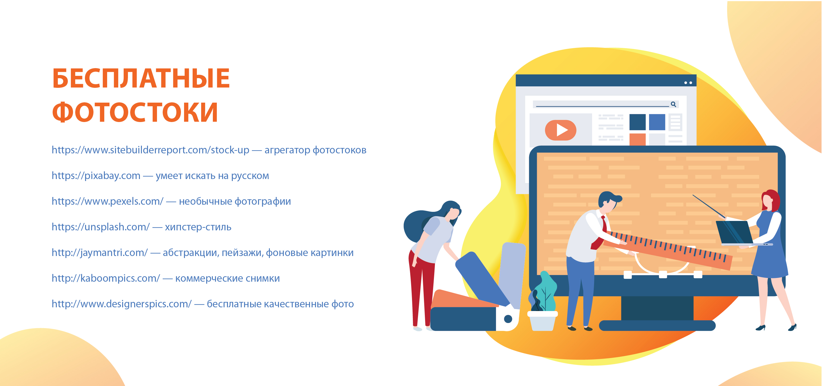 https://unsplash.com/ — вы публикуете материалы в хипстер-стиле и не очень любите «моделей» на фото? Это ваш сервис.
