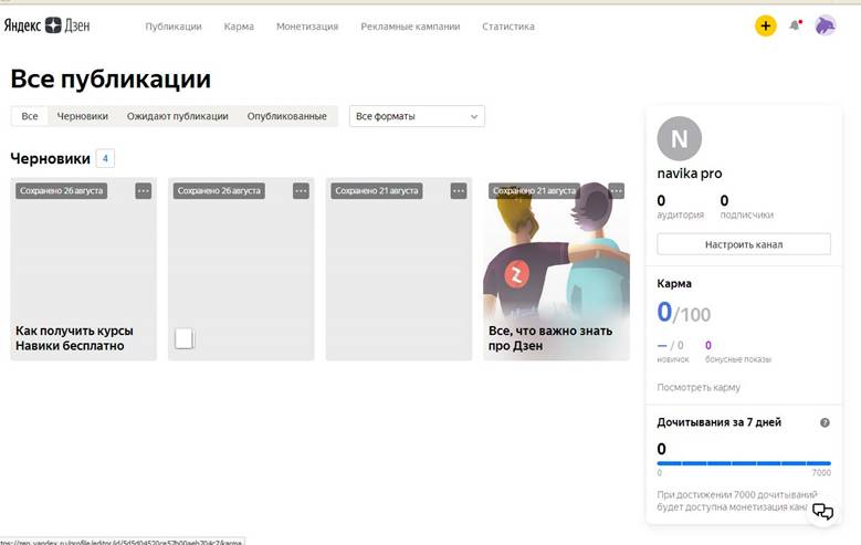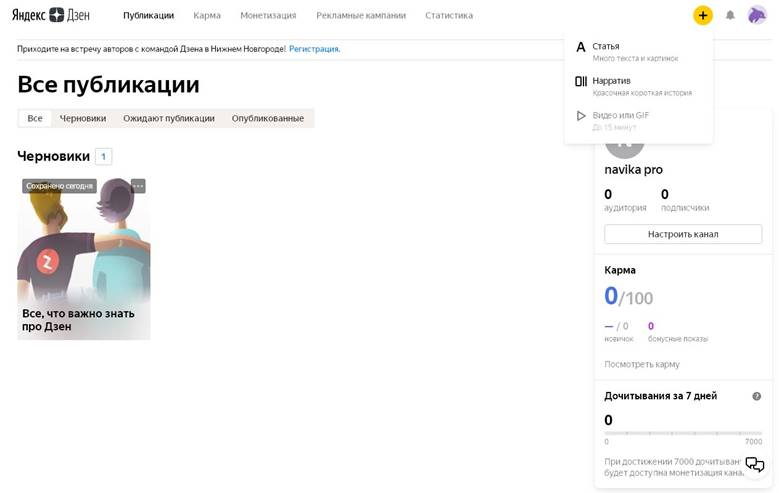 Ваша «рабочая платформа» в «Яндекс.Дзене» — ваш канал.