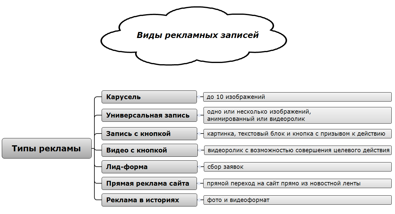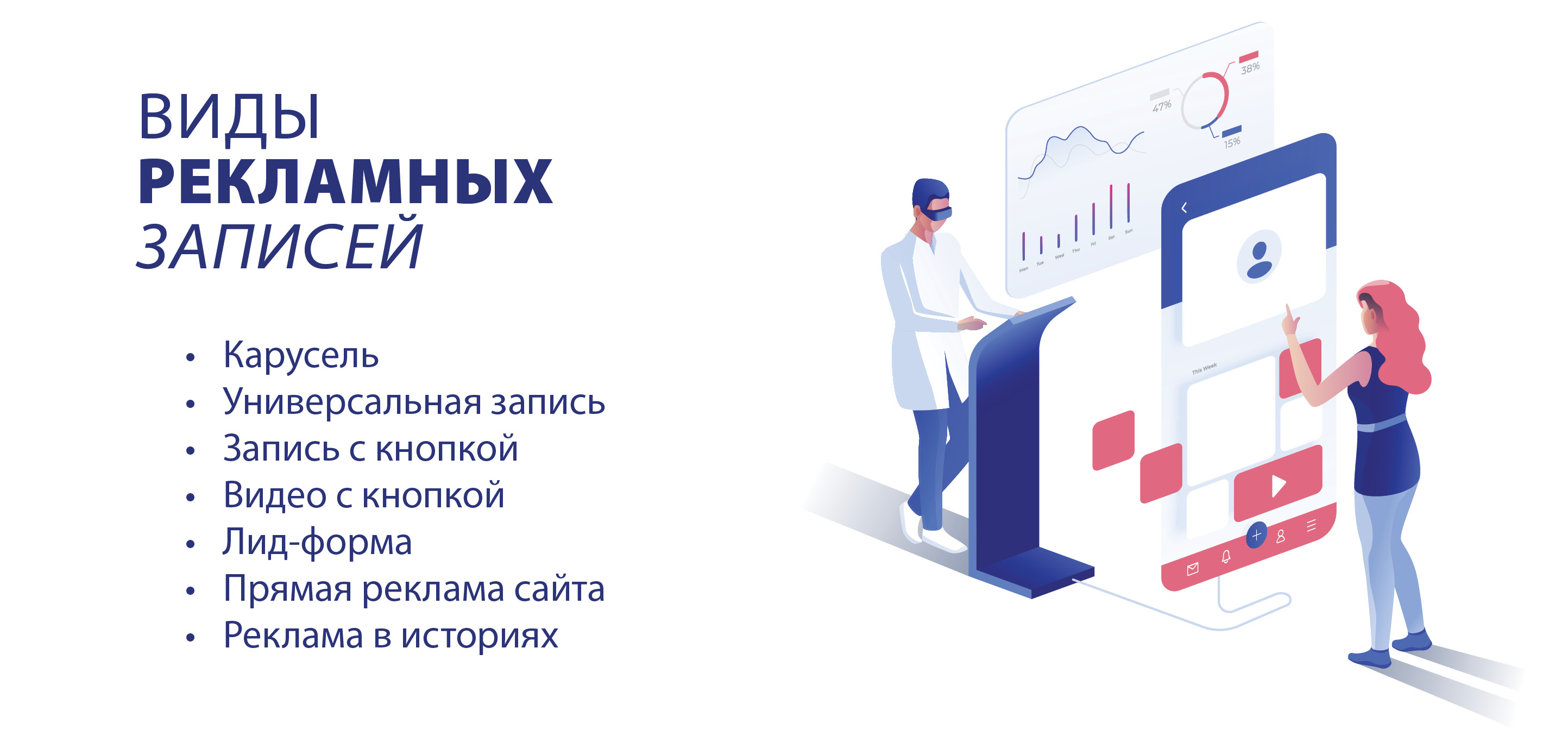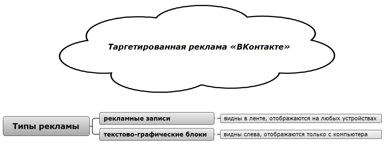 Вся реклама «ВКонтакте» делится на два типа: рекламные записи (РЗ) и текстово-графические блоки (ТГБ).