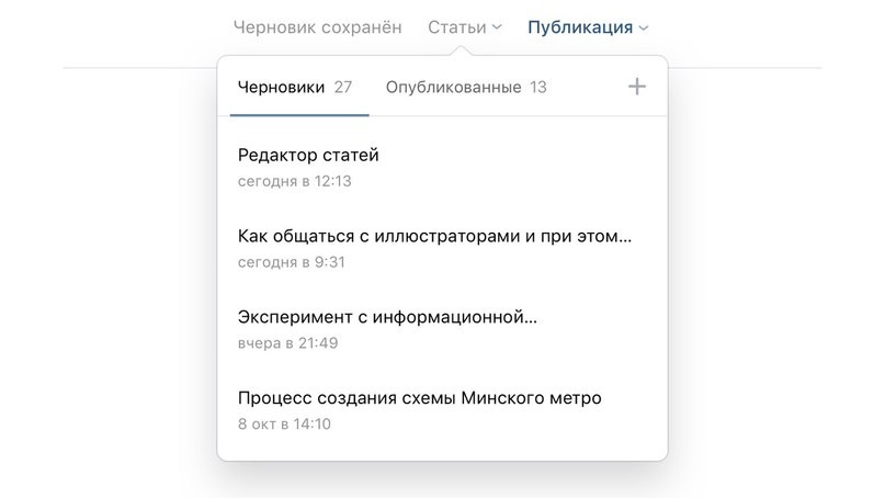 Кроме того, «ВКонтакте» автоматически сохраняет черновик статьи. Вы можете отредактировать его в меню «Статьи».