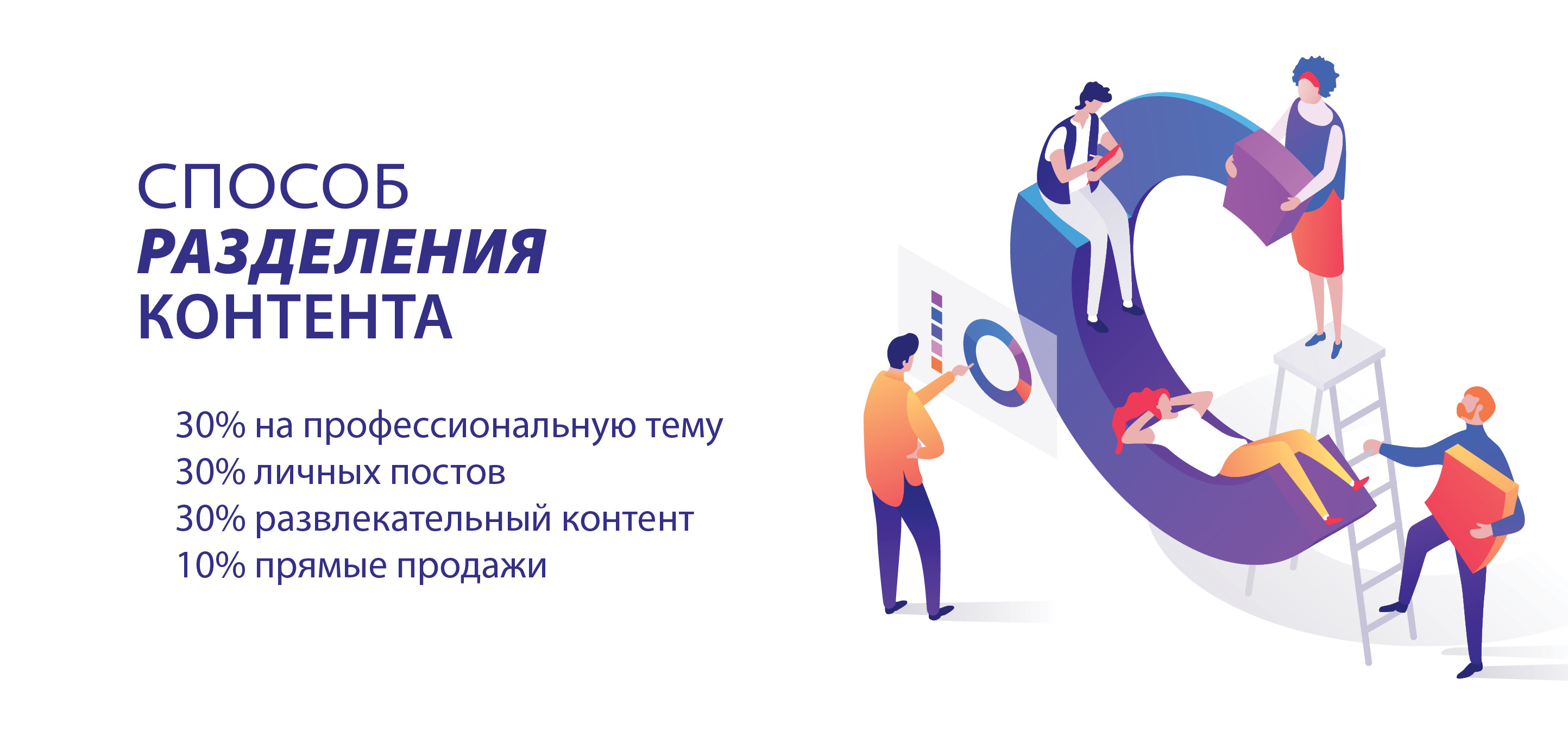 30% материалов — на профессиональную тему, это материалы, где вы демонстрируете свою экспертность;