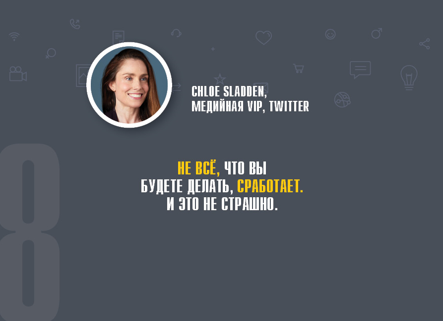 - «Не все, что вы будете делать, сработает. И это не страшно» (Chloe Sladden, медийная VIP, Twitter).
