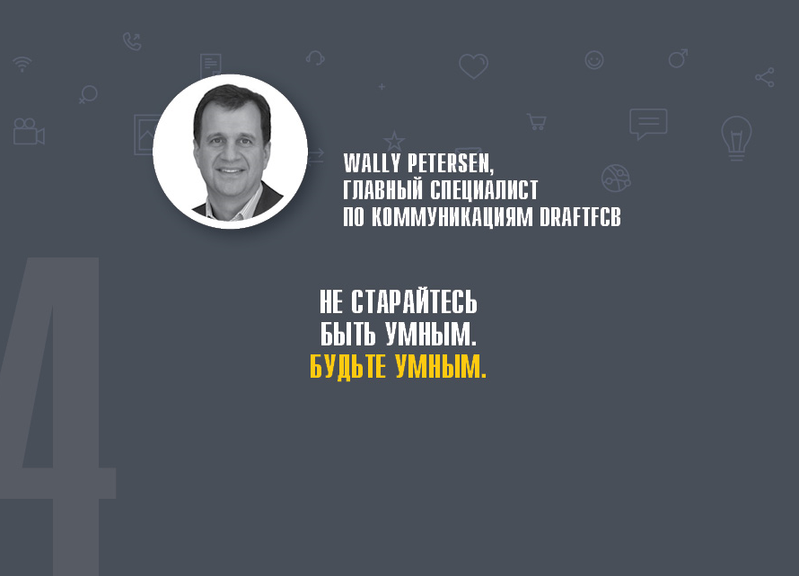 - «Не старайтесь быть умным. Будьте умным» (Wally Petersen, главный специалист по коммуникациям Draftfcb).
