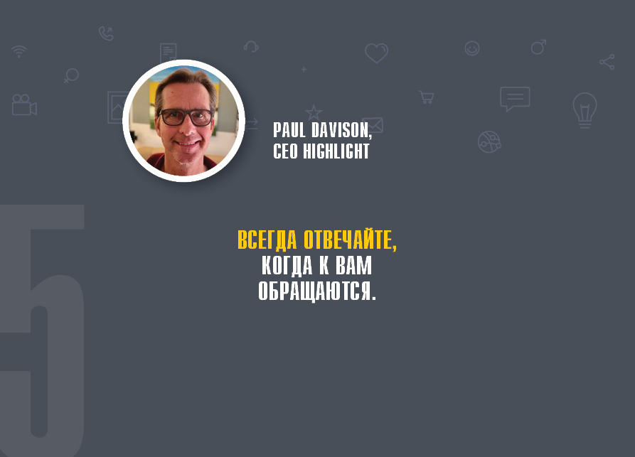 - «Всегда отвечайте, когда к вам обращаются» (Paul Davison, CEO Highlight).