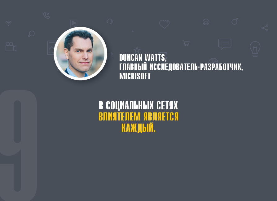 - «В социальных сетях влиятелем является каждый» (Duncan Watts, главный исследователь-разработчик, Micrisoft).