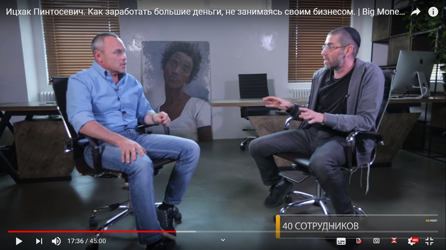Смотрите, вот Евгений Черняк идет на интервью к Ицхаку Пинтосевичу. Этот разговор на канале Ицхака смотрят 95 тысяч человек. А вот Евгений Черняк на своем канале BigMoney берет интервью у Ицхака Пинтосевича. Эту беседу смотрят 595 тысяч. Вот Пинтосевич в гостях у Максима Батырева (18 тысяч просмотров). А вот уже и Батырев навещает Ицхака, и этот разговор собирает у экранов 14 тысяч зрителей.