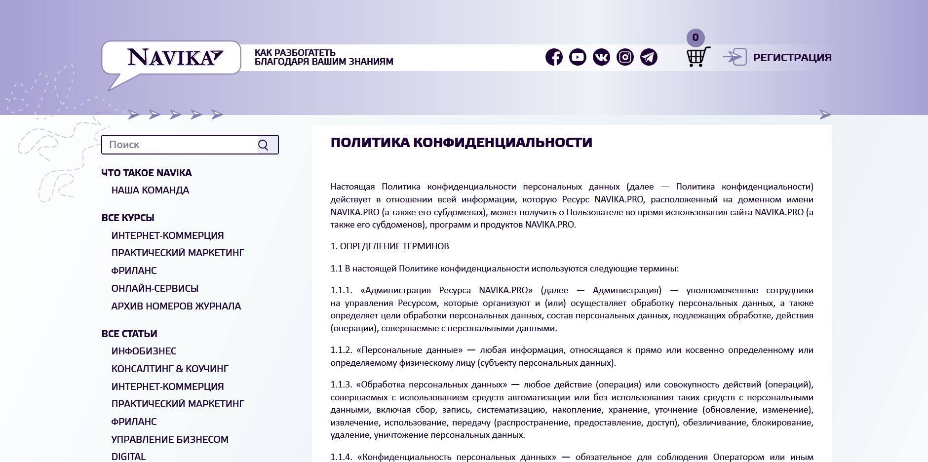 Прежде всего на вашем сайте должна быть страница с политикой конфиденциальности и условиями пользования ресурсом. Ссылки на эти документы удобно располагать в футере, где они доступны для пользователя в любой момент.
