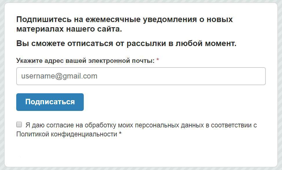 Форма подписки на рассылку должна содержать несколько обязательных блоков: