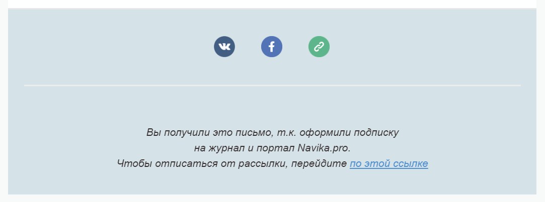 Также в конце каждого письма не забывайте добавлять блок, напоминающий подписчику о возможности отписаться.