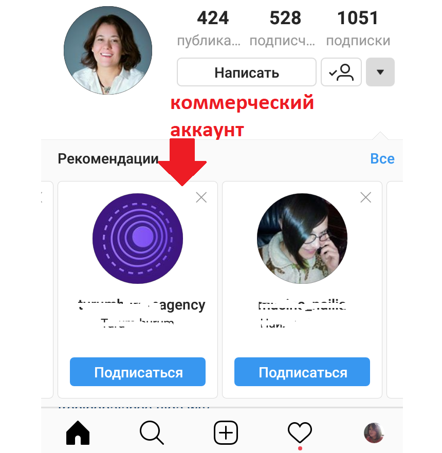 Когда пользователь подписывается на какой-нибудь аккаунт, у него появляется блок с рекомендациями тех страниц, которые могут быть ему интересны. Для этого на рекомендуемый аккаунт должны быть подписаны люди с похожими интересами. Если среди ваших подписчиков много ботов, в рекомендации к реальным аккаунтам вы вряд ли попадете