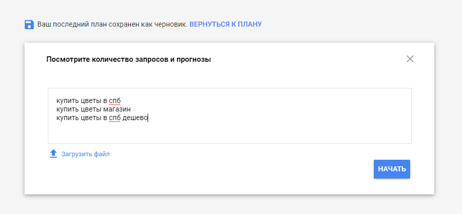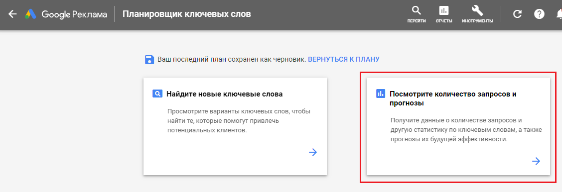 Сервис «Планировщик ключевых слов»