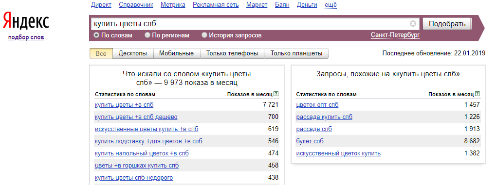 Прежде чем рассчитать медиаплан, необходимо определиться со структурированным списком ключевых слов, которые планируется использовать при запуске рекламной кампании. Для этого можно использовать «Подбор слов» (сервис «Яндекса») и «Планировщик ключевых слов» (сервис Google Ads). Возможно обойтись только сервисом «Яндекса», чтобы составить общую картину. Но рассмотрим алгоритм работы в обоих сервисах.