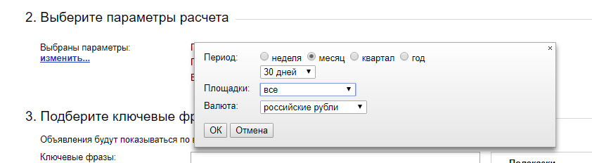 2. Выбираем параметры расчета. Как раз в этой графе можно указать необходимый интервал, если бизнес имеет сезонный характер.