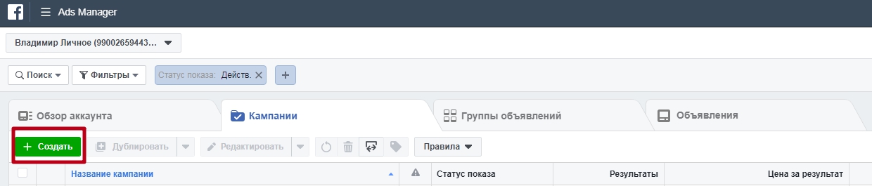 Перед тем как давать рекламу, стоит сделать анализ, насколько широка ваша целевая аудитория в социальной сети, будь то Facebook или Instagram. И сделать это довольно просто. Для начала вам потребуется иметь доступ к рекламному кабинету. Зарегистрироваться в нем можно по ссылке https://www.facebook.com/adsmanager/manage/ и далее создать фиктивную рекламную кампанию, чтобы оценить ширину таргетинга.