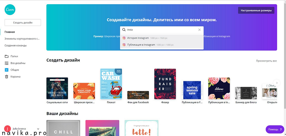 В этой статье на примере одного из графических сервисов, Canva, продемонстрируем, как создать оформление для публикации в «Инстаграме».