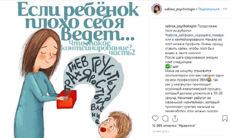 Владелец аккаунта: Сабина Ламанна, обладательница диплома МГУ, детский и семейный психолог, автор книги о воспитании детей, создатель собственного детского центра.