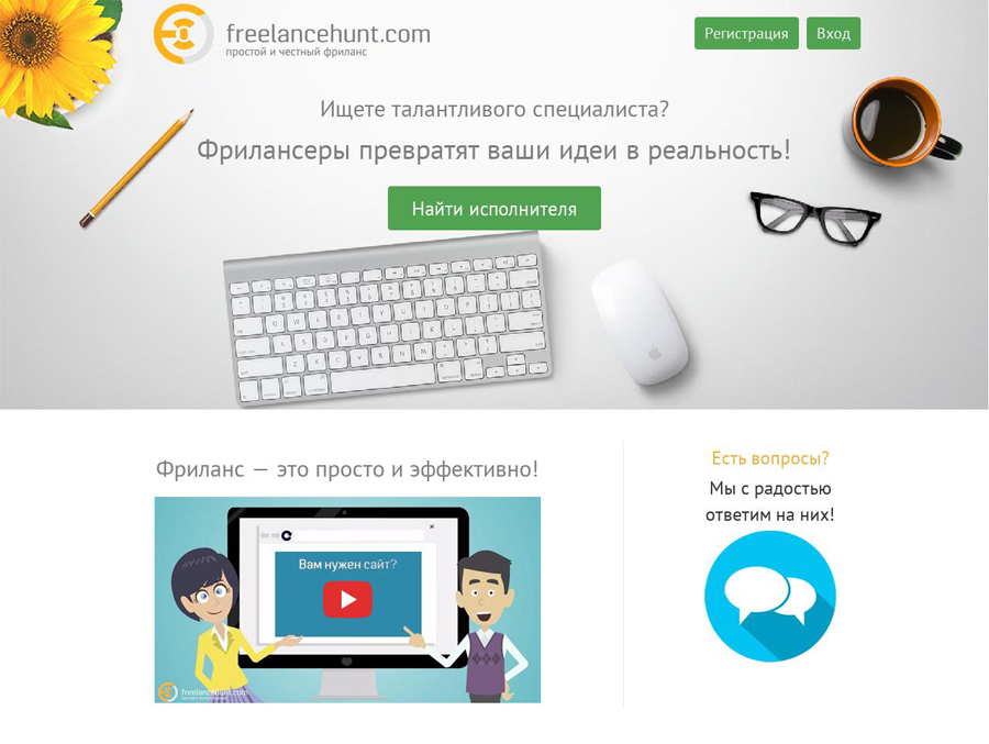 Вторая биржа, которая меня порадовала отсутствием активно навязываемых платных услуг и возможностью получать за свой труд адекватные деньги, — это Freelancehunt.com.