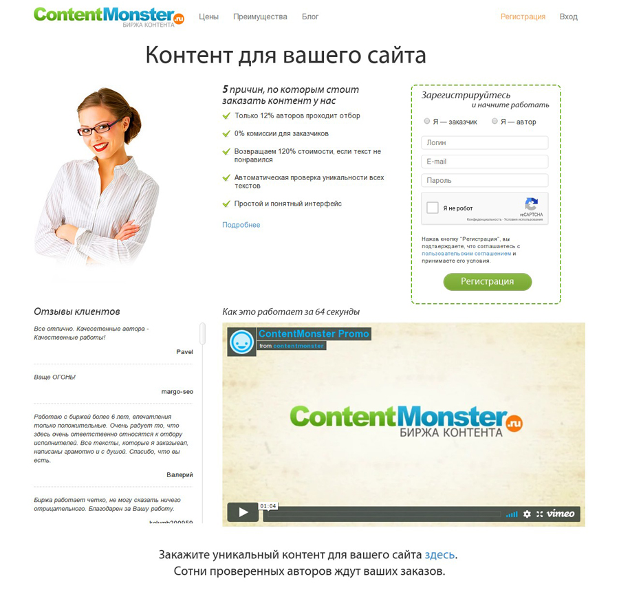 Свое плавание в океане копирайтинга я начинала в компании таких акул, как Advego и eTXT. Пару раз обжегшись на заказчиках, которым было недосуг объяснить, чем копирайт отличается от рерайта и какую селедку называют SEO, задумалась о смене водоема. И боги Google сжалились надо мной, послав в своей выдаче ссылку на биржу ContentMonster.ru.