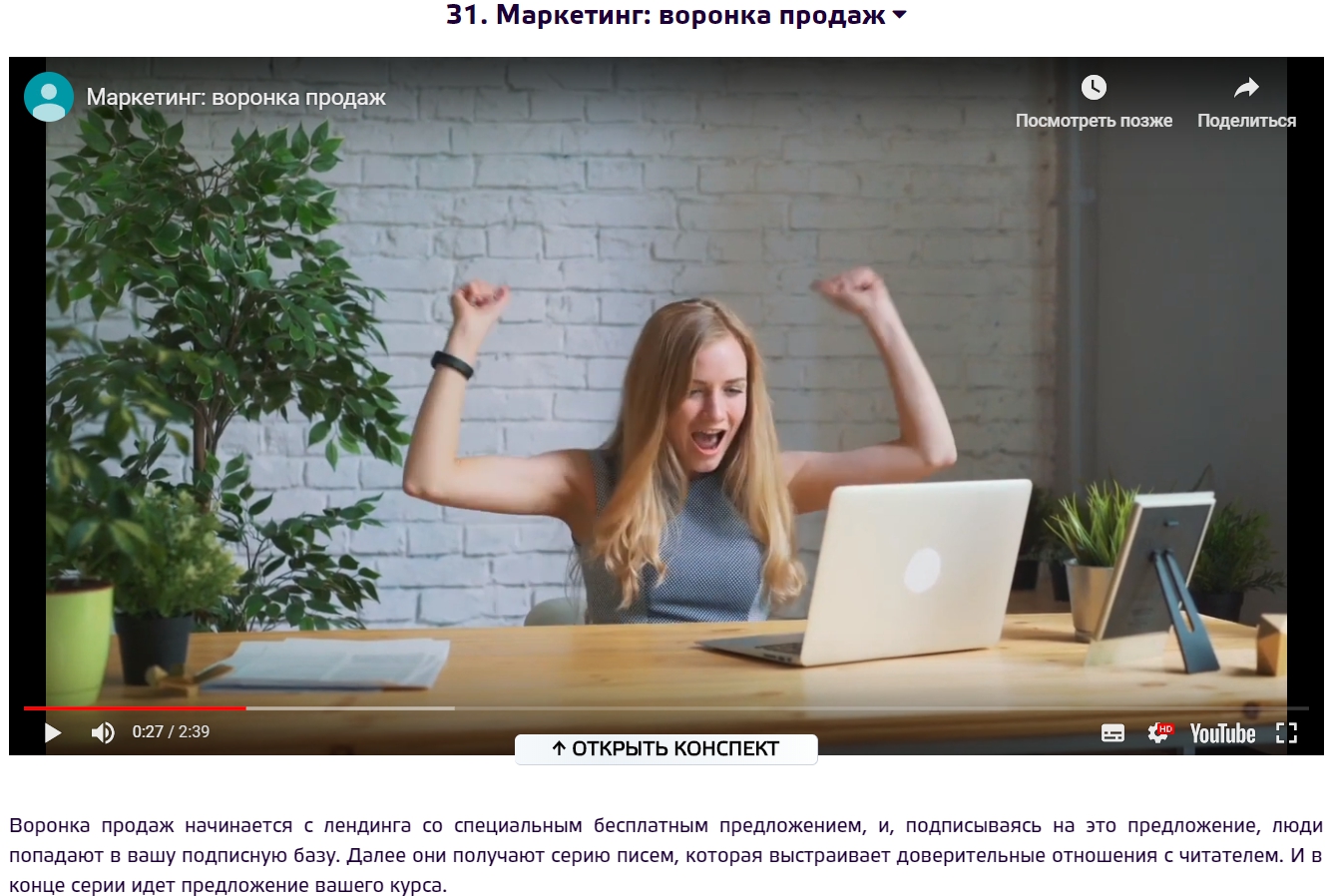 Все это и не только это — в нашем подробном курсе «Как создать онлайн-курс». Четкие методики, пошаговые программы, понятные инструкции. С их помощью вы сделаете нужный, гарантированно востребованный людьми продукт и сможете сразу начать его продвигать.
