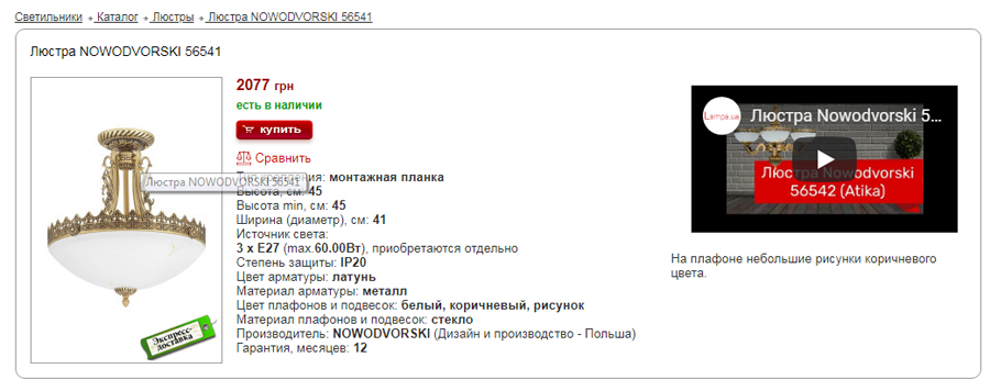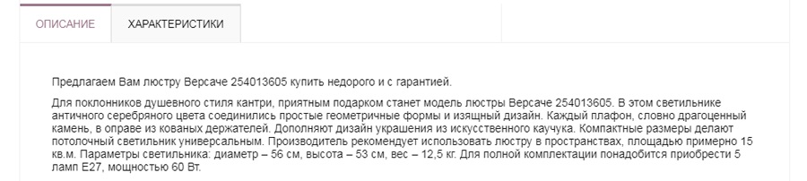 Для антипримера приведем описание люстры Versace за 52 900 рублей.