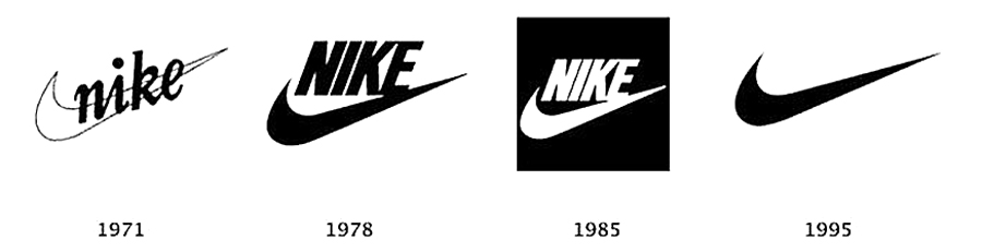 Основной шрифт на эмблеме менялся несколько раз. Изначально это был рукописный шрифт, перечеркнутый галочкой, затем шрифт стал более сдержанным, крупным и симметричным. После его слегка растянули, а в 1995 году имя компании вовсе убрали, оставив только галочку, которая остается узнаваемой по всему миру по сей день.