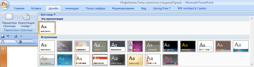 Способ самый распространенный. В программе Power Point в меню есть опция «Дизайн» и там встроенная по умолчанию коллекция шаблонов. Их несколько десятков (в зависимости от версии Power Point).