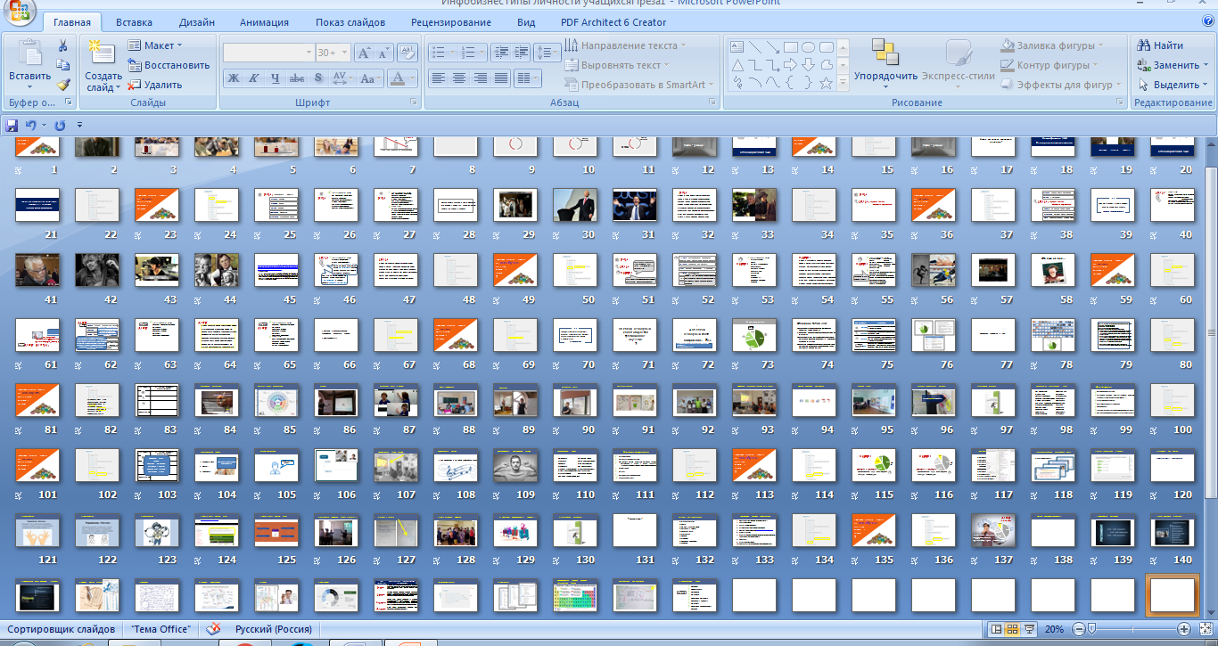 Рис. 2. Обзор количества слайдов ко всему курсу