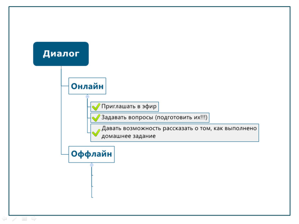 4. Ну и в последнюю очередь проверяем, не нарушена ли логика повествования, есть ли визуальная метафора вашего тренинга. Есть ли визуальная структура-схема всего вашего курса? Есть ли конкретные ссылки на источники, статистика, социальные доказательства, рекомендуемая литература или ссылки? Есть ли подытоживание, завершение раздела в виде схемы, интеллект-карты или чек-листа (рис. 6).