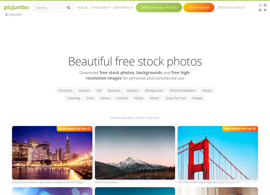 6. Picjumbo.com — этот фотосток содержит высококачественные фотографии и фоны. Изображения удобно рассортированы по категориям.