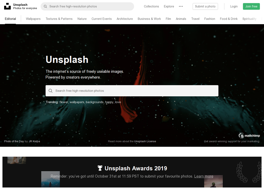 5. Unsplash.com — это сервис с красивыми изображениями. На сайте есть удобная навигация с поиском и сортировкой фото по категориям. Ежедневно на портале публикуется 10 новых фотографий. Здесь не обязательно указывать авторство фотографии или ссылку на ресурс.