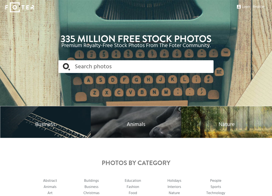 7. Foter.com — на этом фотостоке содержится более 335 млн фото. Вы скачиваете понравившиеся изображения и одновременно проверяете их на наличие лицензий. На сайте много различных фотокатегорий, есть функция поиска. Портал использует Flickr API.