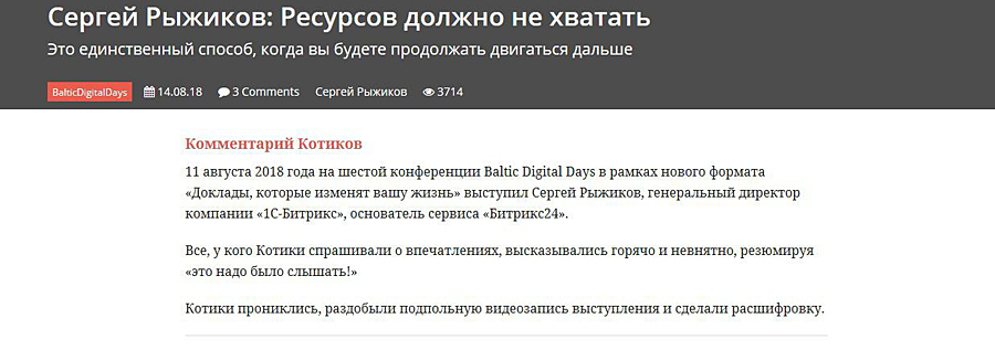 Покажите вашу авторскую позицию. Да, если вы выбрали годный материал, посетителям сайта нравится его читать, они активно комментируют, делают репосты. Но не видят той работы, которую проделал куратор. Поэтому при перепубликации добавляйте ценности. Авторская интерпретация, комментарий во вступлении или в конце материала — и вот уже контент «заиграет» по-новому. А пользователи услышат и ваш голос.