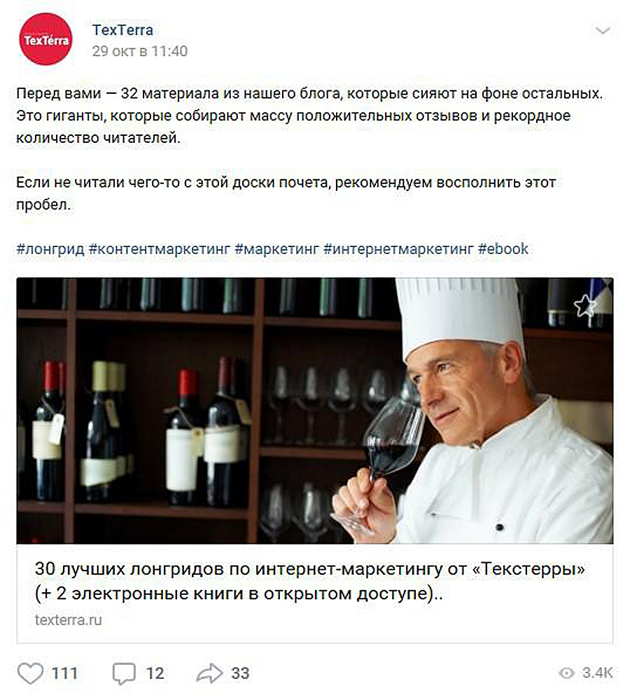 Курировать можно (и нужно!) не только чужой, но и собственный контент. Это делать быстрее: не придется что-то искать — нужная информация под рукой. Достаточно выбрать наиболее популярные публикации, проверить, работают ли ссылки, актуальны ли данные. Перед повторным размещением своего материала можно переписать лид, подобрать другую картинку. А можно объединить несколько своих статей.