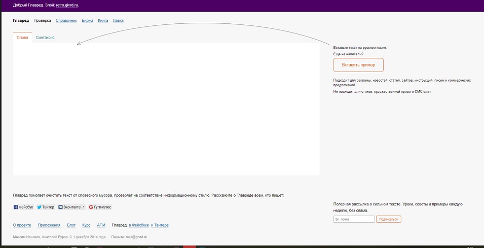 Неплохой сервис по очистке текста от мусора, например от выражения «самый лучший» (лучший — он уже самый, «самее» не бывает). Относительно безобиден, не кромсает текст, как «ГлавВред», о котором я расскажу ниже. Действительно полезен.