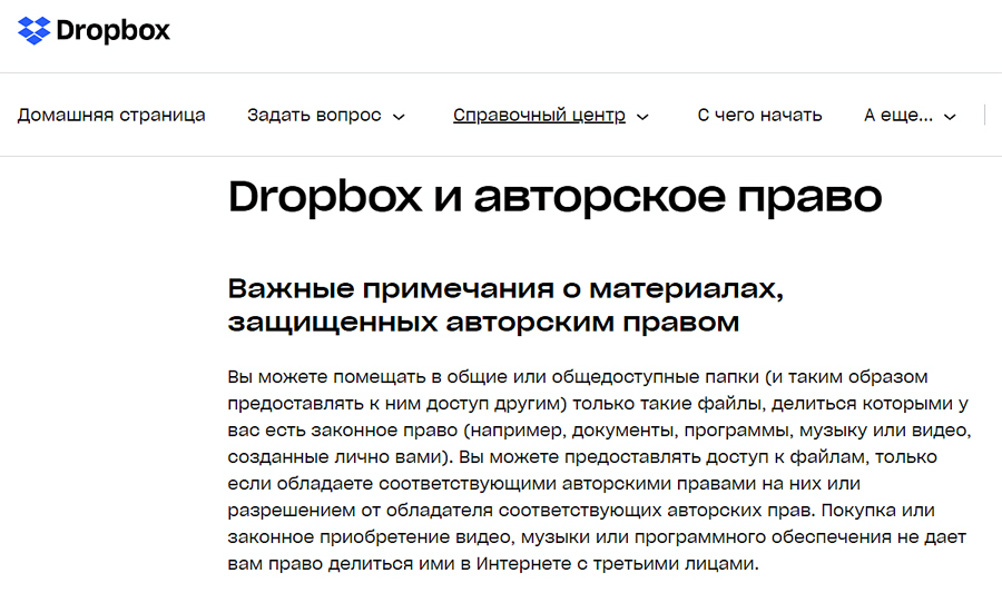 Если сервис заметит, что по публичной ссылке совершается слишком много переходов и скачиваний, он может самостоятельно приостановить ее действие, при этом сам контент не удаляется. Однако это касается в основном музыки и кинофильмов, легальность которых довольно легко проверить. Если же речь идет об учебном курсе или записи вебинара, вам, как автору, придется написать в поддержку Dropbox.