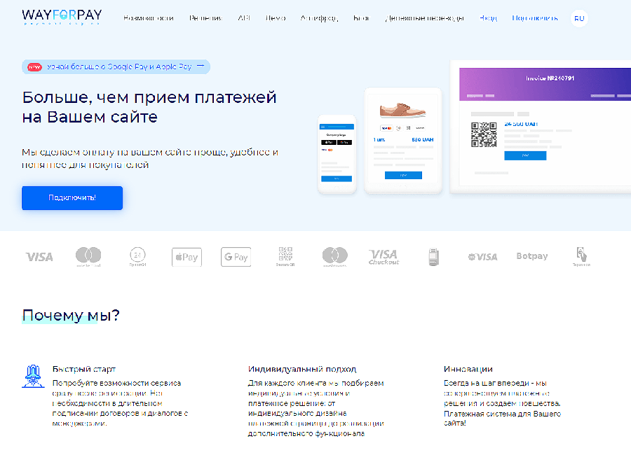 WayForPay (www.wayforpay.com) — это надежный сервис для приема онлайн-платежей на сайте с 15-минутной регистрацией и интеграцией.