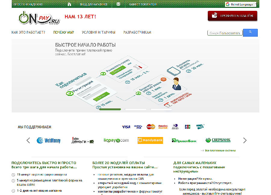 ONPay (www.onpay.ru) — это быстрая и безопасная платформа интернет-эквайринга с удобным функционалом и простой процедурой интеграции.