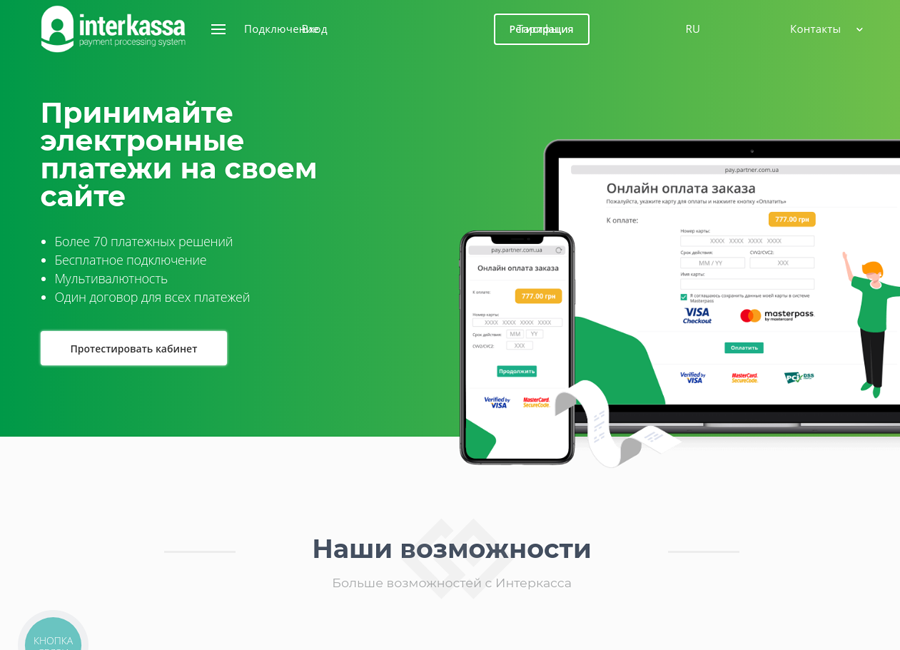 - Прием платежей через карты Visa и MasterCard, что позволяет дополнительно обслуживать жителей ЕС и США.