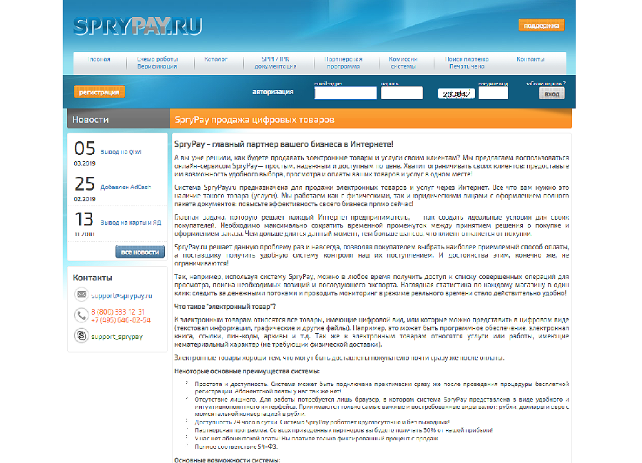SpryPay (www.sprypay.ru) — это удобный и быстро подключаемый платежный сервис, особенностью которого является работа с инфопродуктами без физической доставки.