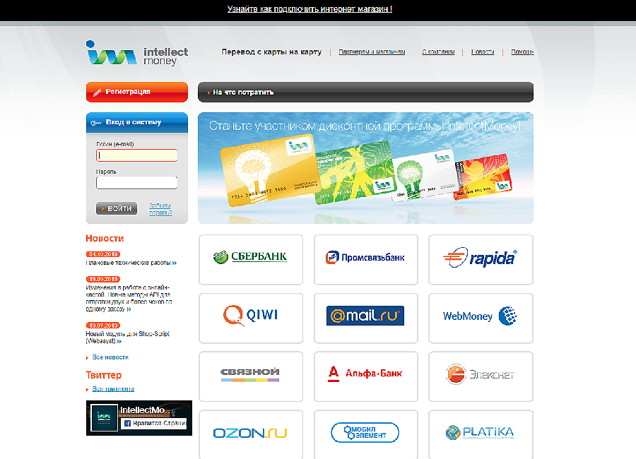 IntellectMoney (www.intellectmoney.ru) — это прогрессивная платежно-дисконтная система для интернет-коммерции. Система существует 10 лет и предлагает целый ряд привлекательных решений.