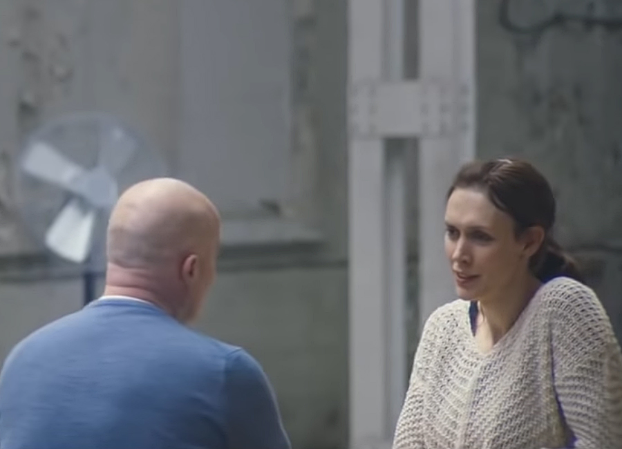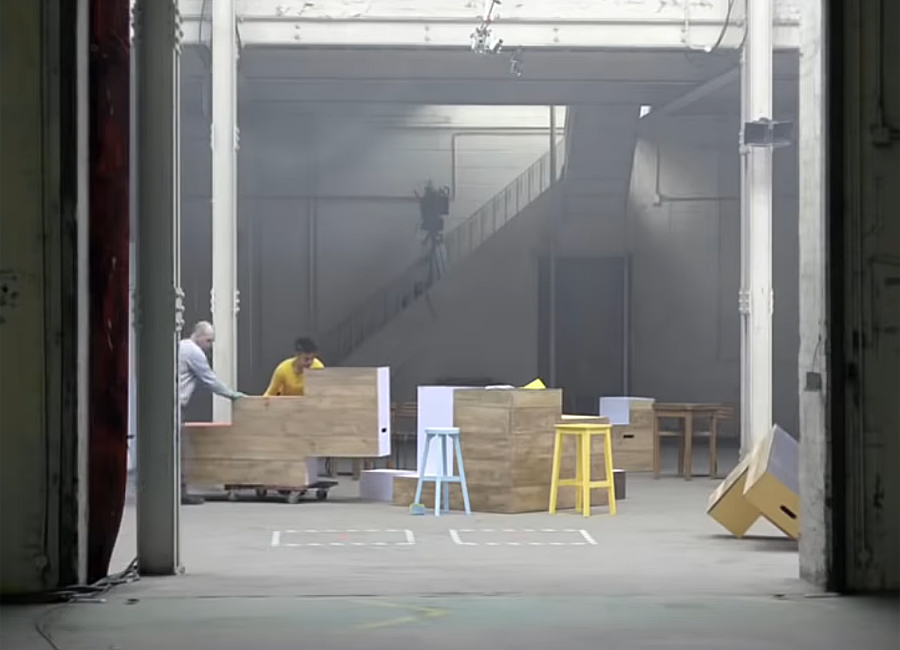 На белую стену из крашеного кирпича проецируются видеозаписи с высказываниями героев из самого начала рекламного ролика.