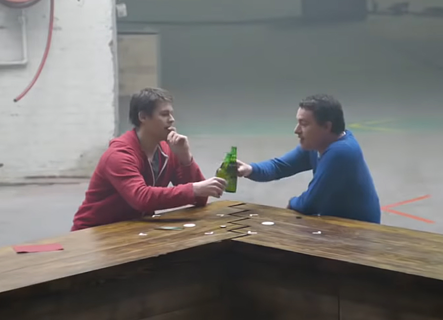 Персонажи строят барную стойку, сам символ потребления пива. С самого начала они объединены этой общей работой. И этапы социального опыта следуют общей схеме знакомства людей в баре: разбить лед, познакомиться, построить мост и решить остаться на связи.