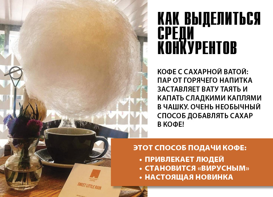 Кофе с сахарной ватой: пар от горячего напитка заставляет вату таять и капать сладкими каплями в чашку. Очень необычный способ добавлять сахар в кофе!