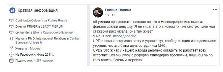 Дошло до того, что ситуацию осветили некоторые СМИ. И хотя Панина удалила пост, массовая публичная критика PR-директора вылилась в критику компании: