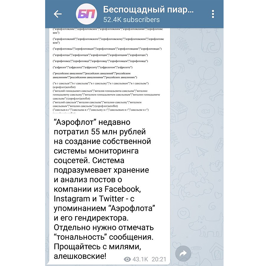 Часто русский черный пиар персонифицирован. Например, 16 ноября Митя Алешковский, общественный деятель, медиаменеджер, журналист, так прокомментировал приказ Виталия Савельева, гендиректора «Аэрофлота», о запрете сотрудникам использовать мобильные телефоны: