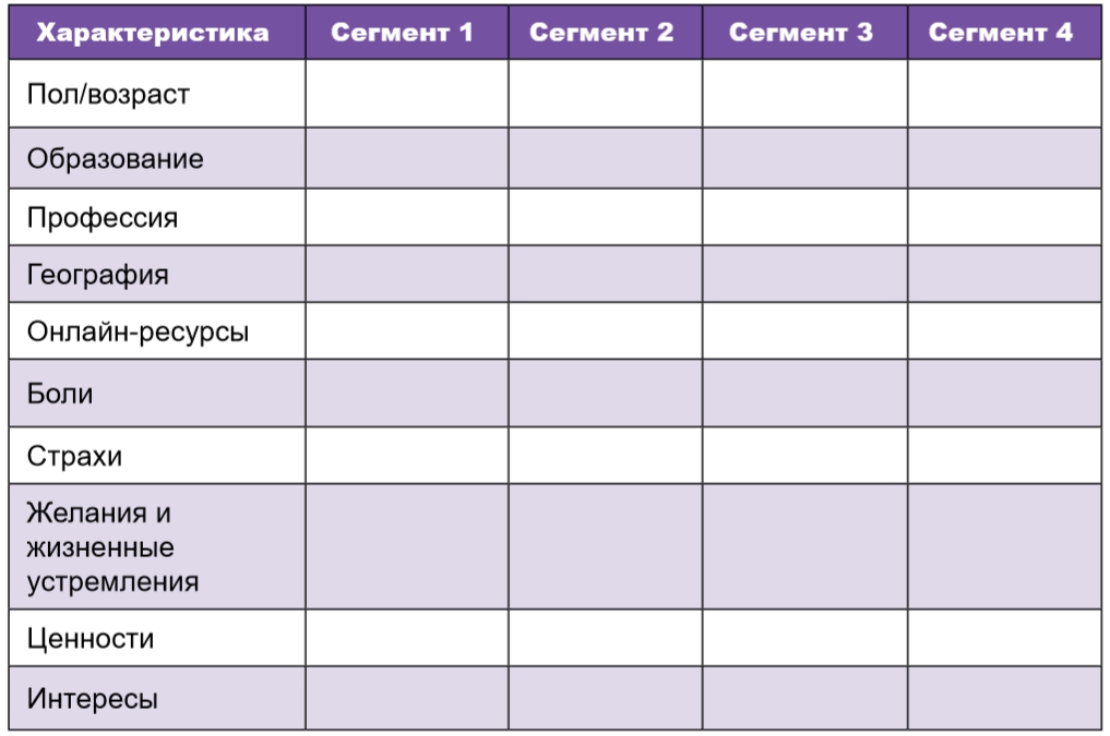 Я даю вам алгоритм и таблицу, которую вы сможете заполнить по этому алгоритму, чтобы получить минимально необходимое описание своей ЦА. Есть одно важное условие успеха: вы стараетесь все ответы на вопросы записывать не своими словами, а языком клиента. Именно записывать, потому что, если описание существует только в вашей голове, считайте, что его нет вообще. Работать можно только с тем, что положено на бумагу.
